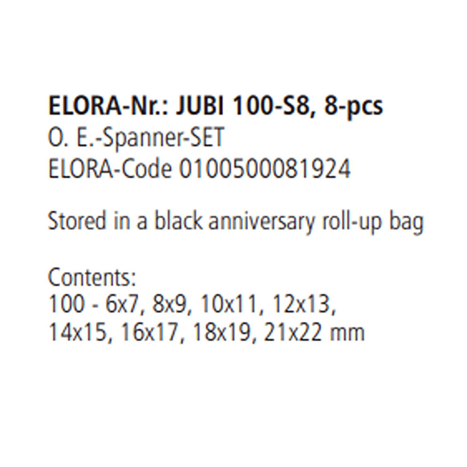 ELORA JUBI 100-S8 Spanner Set Roll Up Bag (ELORA TOOLS)
