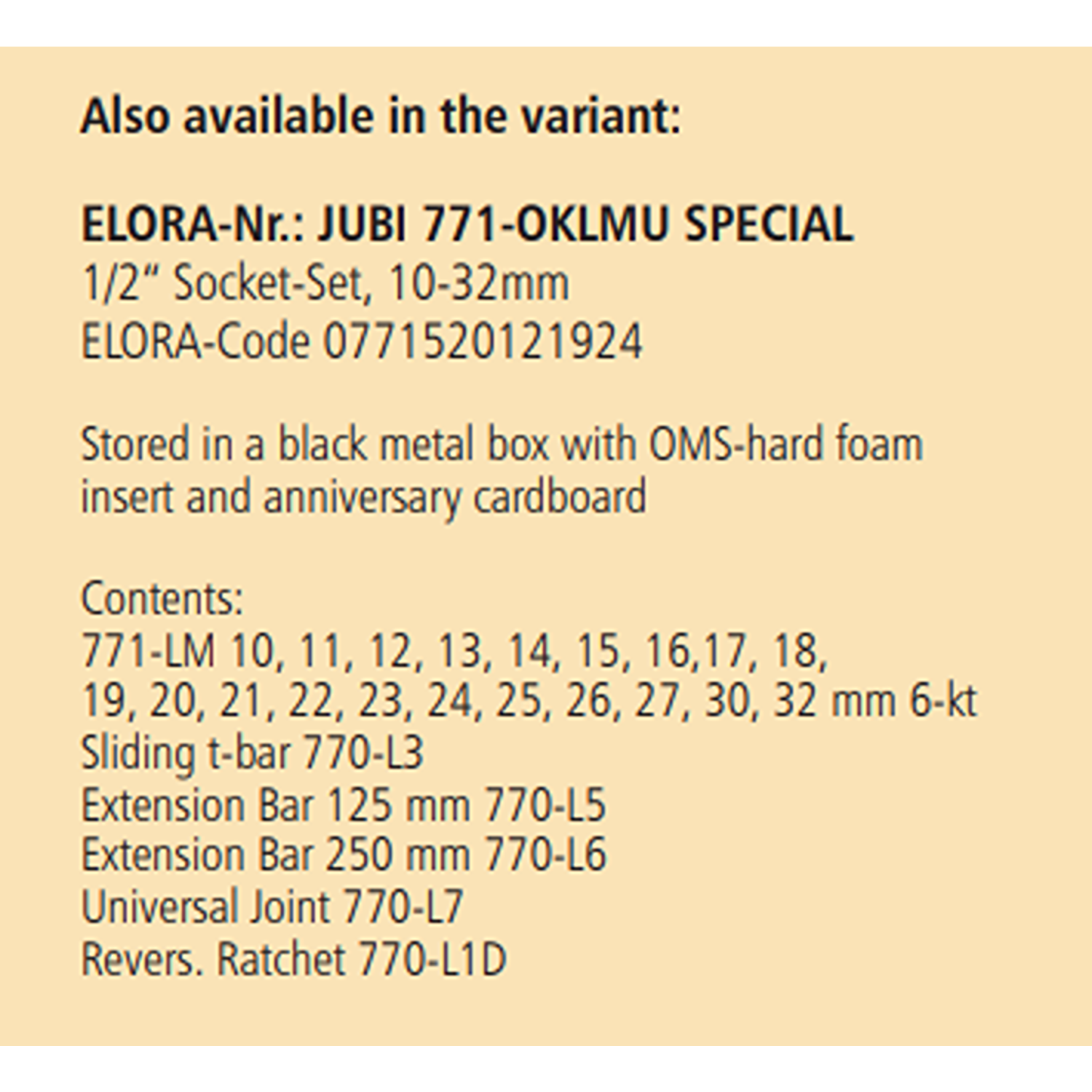 ELORA JUBI 771-OKLMU 1/2" Socket Set 10-32mm (ELORA Tools)
